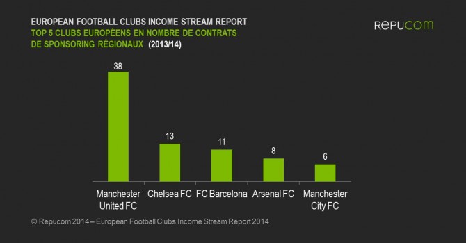 Pierre-Emmanuel Davin, Directeur de Repucom France, s’est exprimé sur ce rapport dans le communiqué de presse sur le cas Manchester United : « Lors de la saison 2012/13, Manchester United a signé 13 accords de partenariats régionaux, puis 10 supplémentaires la saison suivante. Au regard de la saison 2014/15, le partenariat du FC Barcelone avec Tecate, leur bière officielle au Mexique, celui de Liverpool avec ComeOn! qui devient leur partenaire attitré dans les paris en Scandinavie, ainsi que l’engagement de Manchester City avec la Saigon Hnoi Commercial Joint Stock Bank, partenaire officiel « cartes de paiement » du club au Vietnam, au Laos et au Cambodge, prouvent bien que cette nouvelle stratégie maintient son allure de développement. »