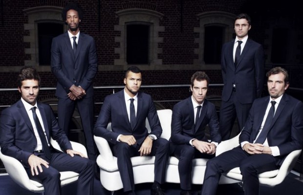Daniel Hechter qui habille l’équipe de France de Coupe Davis avec des costumes personnalisés pour chacun des membres a organisé une séance photo pour présenter les produits offerts aux joueurs et disponibles pour le grand public.