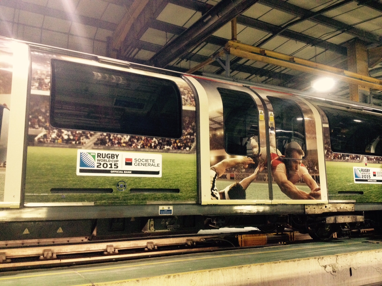 En plus de Jonny Wilkinson, la Société Générale a décidé de mettre le paquet en terme de communication. En effet, dès septembre 2014, Société Générale a lancé une campagne de communication qui valorise à la fois son engagement dans le rugby et la Coupe du Monde et auprès de ses clients. A l’approche de la compétition, la campagne monte en puissance en s’étendant au métro londonien. A partir du 19 mai et durant six mois, sur la Waterloo & City line desservant la City, Société Générale sera présente en affichage à l’intérieur des cinq rames circulant sur la ligne ; une rame sur cinq sera habillée à l’extérieur aux couleurs de la banque et du rugby.