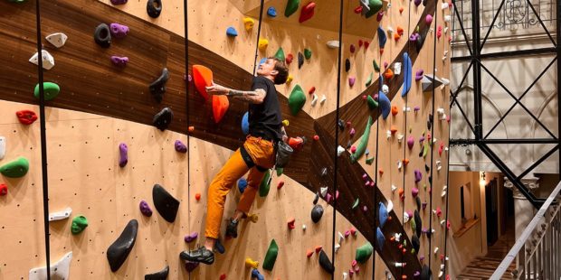 La première salle d’escalade de voie au cœur de la capitale ouvre ses portes avec un pari audacieux : proposer une structure de grimpe uniquement sur enrouleurs. C’est une nouvelle pratique de l’escalade plus urbaine et adaptée aux contraintes du grimpeur parisien. Plus besoin de trouver un partenaire pour grimper il suffit d’enfiler un baudrier et de s’attacher pour grimper en toute sécurité sur des murs culminant à plus de 13m. « C’est une escalade plus proche du bloc mais sur une grande hauteur et sans les contraintes de la corde. » précise Antoine Paulhac, Directeur Général du Groupe.