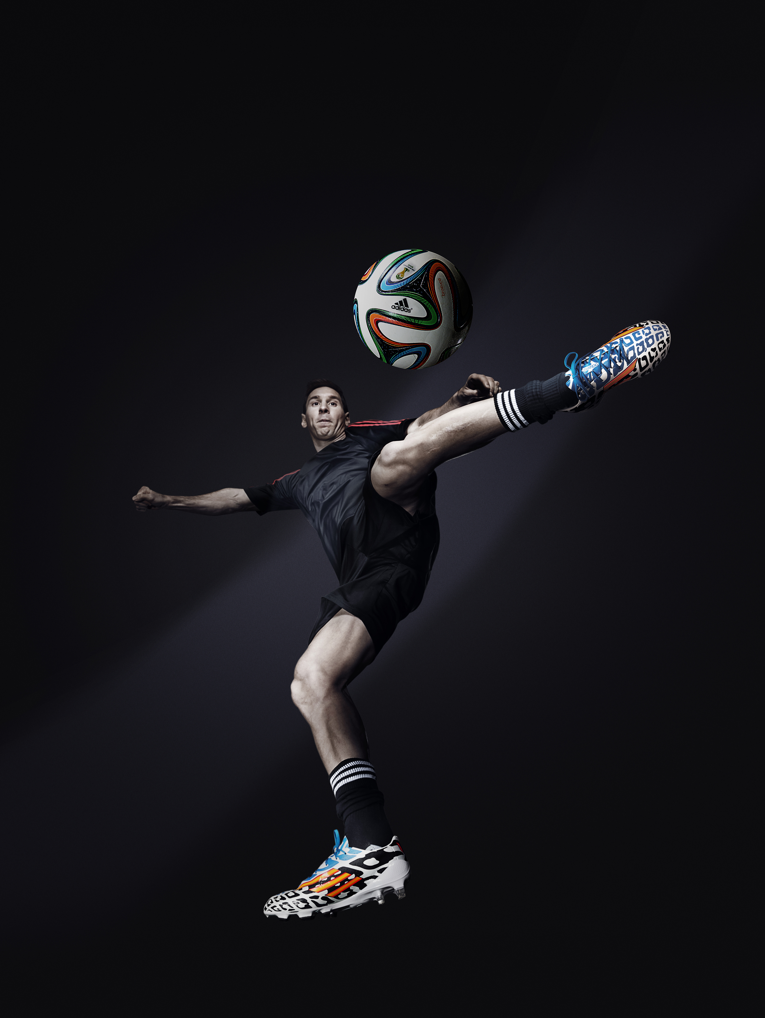 Le coloris noir et blanc est une représentation visuelle de la campagne adidas 2014 pour la Coupe du Monde avec exactement 50% de blanc et de 50% de noir sur chaque chaussure. Cette vision et ce positionnement quelque peu manichéens de la marque trouvent aujourd’hui leur écho sur le produit de manière visuelle. La seule exception sur les coloris est sur la f50 adizero Messi qui dispose d’un coloris bleu et blanc, inspiré par les couleurs nationales de l’Argentine, terre natale de Leo Messi.