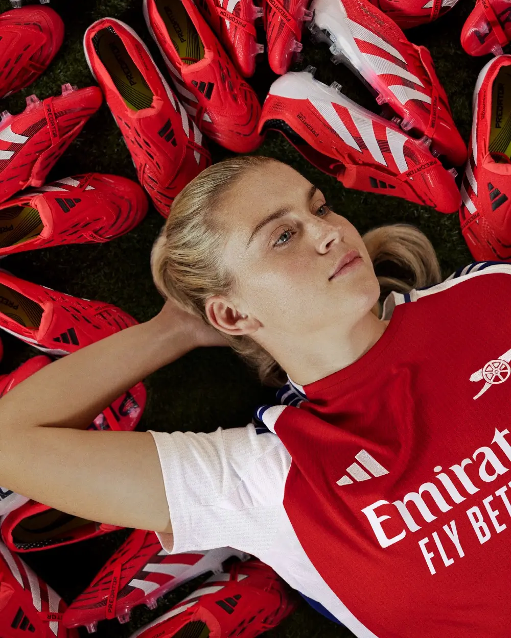 Alessia Russo : « Par le soutien qu’elle apporte et son design emblématique, la Predator incarne pour moi l’audace et l’affirmation de soi sur le terrain. Sa languette est, de loin, la caractéristique que je préfère, et elle a été encore améliorée sur ce modèle au coloris extraordinaire. Je suis impatiente de pouvoir tester la Predator 25 sur le terrain pour voir ce qu’elle me permettra d’accomplir face aux buts. »