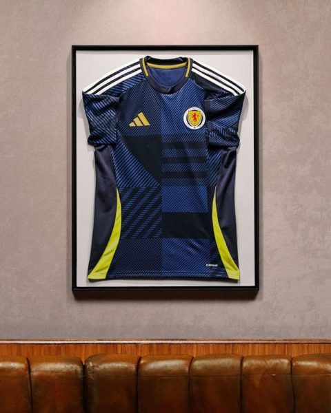 L’Écosse est un pays de passions auxquelles le maillot domicile fait référence par le biais d’un motif de tartan modernisé et agrémenté de formes géométriques sur un fond bleu foncé qui fait référence à l’histoire du pays. Le maillot extérieur reprend les mêmes thèmes en s’inspirant pour sa part d’un kit emblématique des années 90, avec un motif de tartan d’un violet sombre sur un fond clair, pour un look coloré et original. Le drapeau écossais apparaît quant à lui à l’arrière du col des deux maillots dans une réinterprétation qui intègre également le tartan.