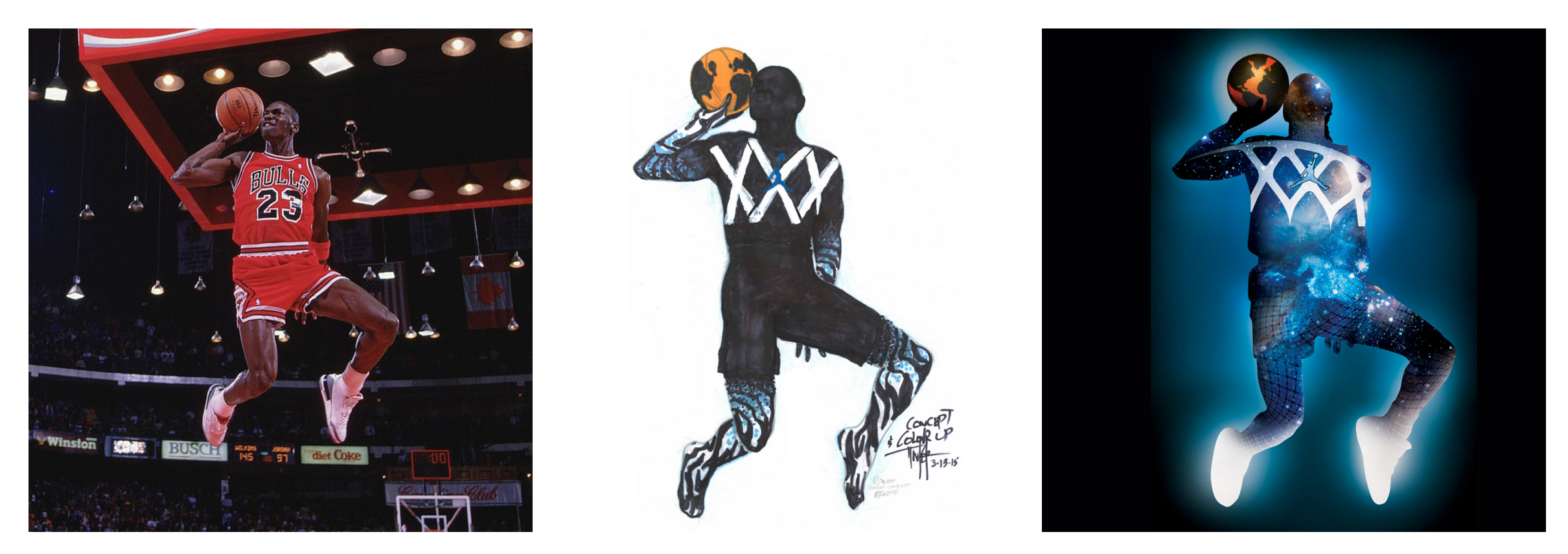 Qui dit 30 ans, dit histoire. Cette Air Jordan XXX est bourrée de références historiques. Pour le motif « XXX » qui habille l’arrière de la chaussure, Tinker Hatfield, M. Design chez Nike et créateur de la chaussure, s’est inspiré d’une photo de Jordan en train de dunker. Les étoiles représentent le talent du numéro 23. Les planètes rappellent les innovations des modèles précédents.