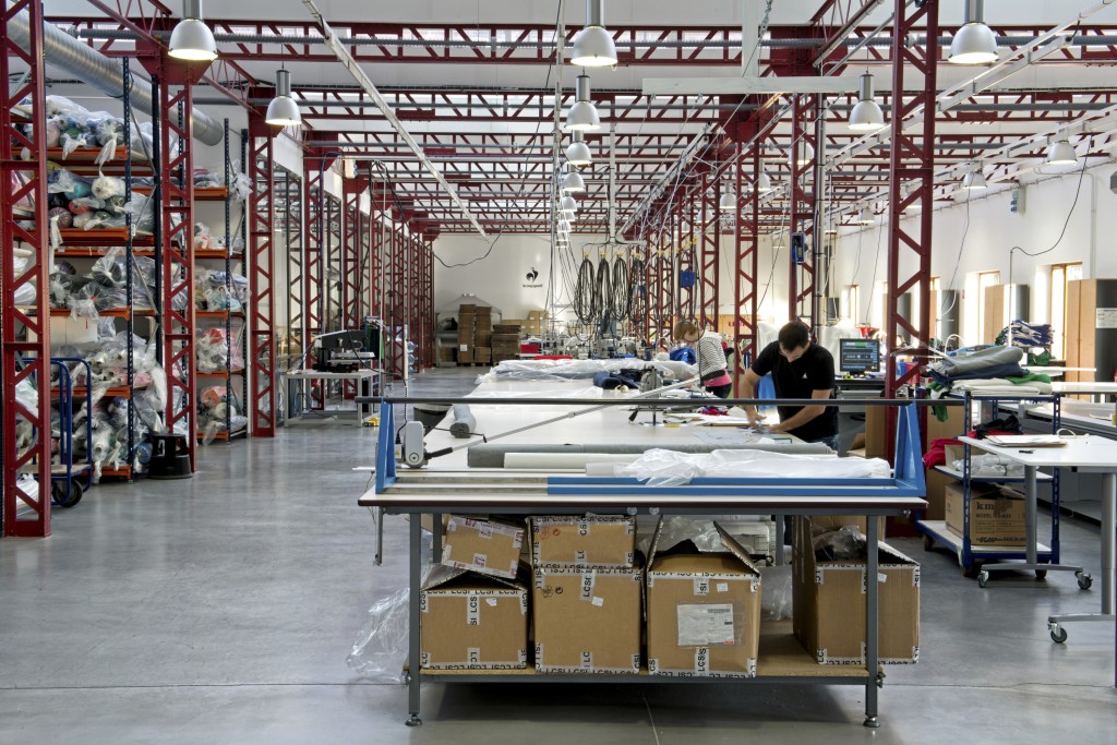 Situés dans l’Aube, le centre de développement textile et l’atelier de production du Coq Sportif perpétuent l’histoire de la marque française fondée par Emile Camuset en 1882, puisqu’ils ont été construits dans l’une des anciennes usines du site. Si de l’extérieur le bâtiment ressemble à une usine du début du XXe siècle, une fois la porte passée, l’architecture industrielle de l’Atelier de production cohabite avec les équipements les plus modernes, sous une lumière précisément étudiée et permettant aux 26 collaborateurs présents sur le site de travailler dans les meilleures conditions.
