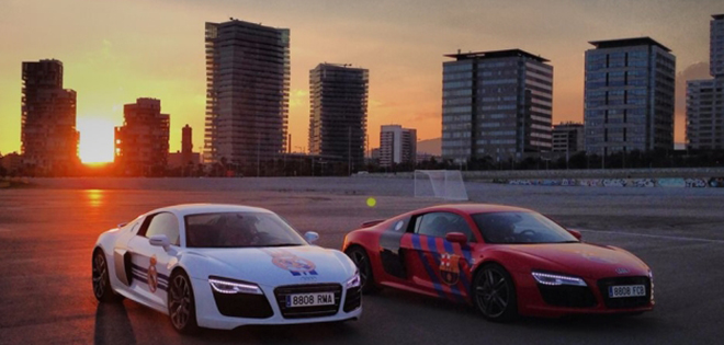 Afin de promouvoir le match de samedi prochain (26 octobre), entre le FC Barcelone et le Real Madrid, le fameux Clasico (10ème journée de la Liga BBVA), Audi, sponsor des deux clubs, vient de sorti  d’un film sur le digital, mettant en vedette deux modèles de la R8, l’une des voitures phares du constructeur allemand, aussi sponsor du Bayern Munich de Franck Ribéry et de Pep Guardiola, ancien entraineur du FC Barcelona.