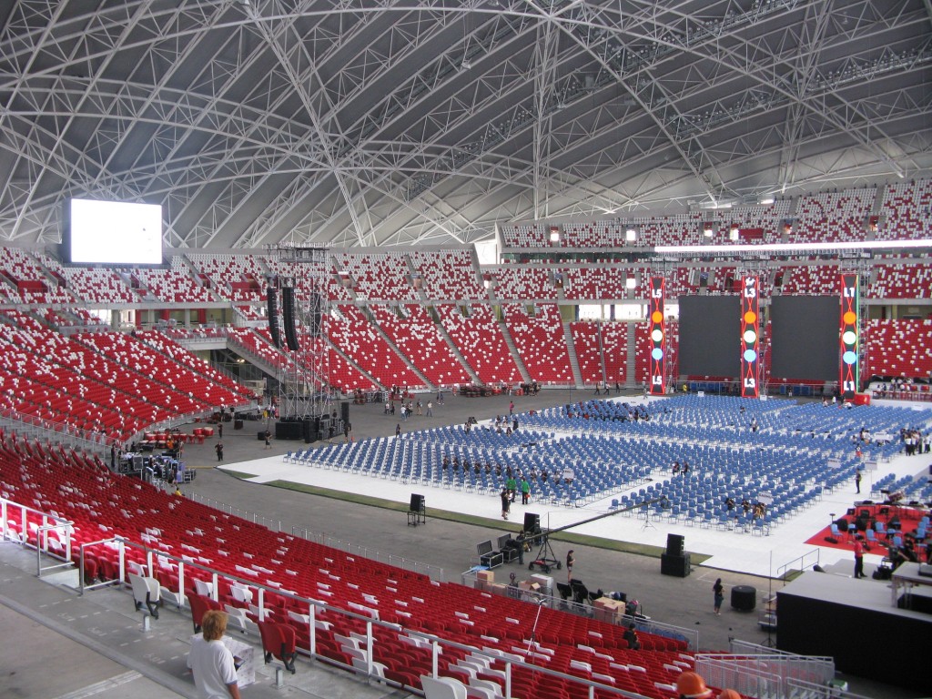 Un système de rafraichissement du public a été installé dans le stade ainsi qu’un toit amovible, en effet, la température moyenne à Singapour tourne autour des 30°C et cette installation faisait partie du cahier des charges de construction du stade pour pouvoir prétendre à l’accueil d’événements de dimension internationale. On peut se demander si le système utilisé ici sera le même dans les stades destinés à accueillir la Coupe du Monde de Football au Qatar en 2022.