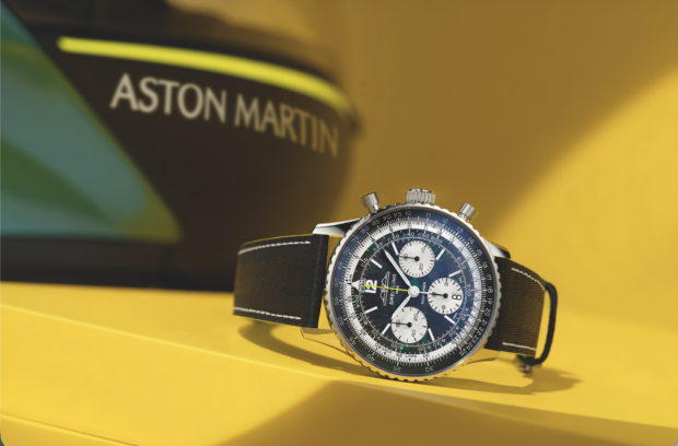 Cette collaboration couvre tout l’univers Aston Martin, des véhicules haute performance assemblés manuellement à Gaydon et St Athan à la poursuite de la gloire par son équipe de Formule 1. Ce nouveau partenariat débute avec la montre Navitimer B01 Chronograph 43 Aston Martin Aramco Formula One Team, qui restitue toute l’intensité de la course.