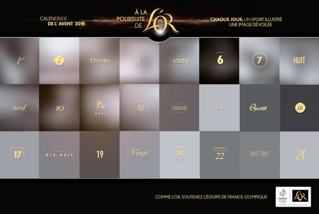 À partir du 1er décembre 2015, la marque L’OR, nouveau partenaire du CNOSF, lance un calendrier de l’avent original, en dévoilant chaque jour la photo d’une discipline sportive des Jeux Olympiques.
