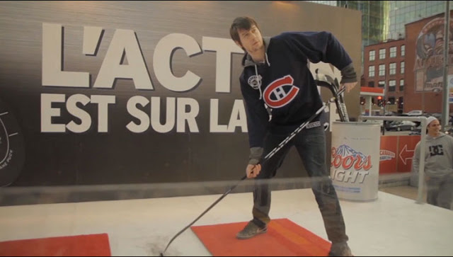 Les Canadians de Montreal, l’équipe de NHL locale, la plus vieille équipe de hockey au monde et l’une des 6 équipes fondatrices de la NHL, dispose d’une base de fans extrêmement actives et passionnés. Durant les play-offs pour la Stanley Cup, Coors Light, marque de bière et partenaire des Canadians de Montreal a mis en place une installation intéractive outdoor, intitulée « L’Action sur la Glace », afin de démontrer l’engagement des fans et les rapprocher encore plus de leur équipe favorite.