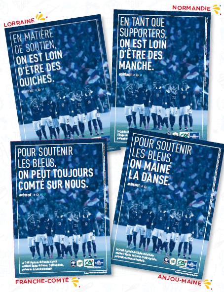 Une campagne de communication sera déployée en région avec de l’affichage dont le contenu est adapté à chaque ville. La marque est aussi présente sur le FFF Tour qui parcourt toute la France depuis plusieurs mois et sera active au sein des fan-zones dans les 10 villes hôtes de l’UEFA Euro 2016.