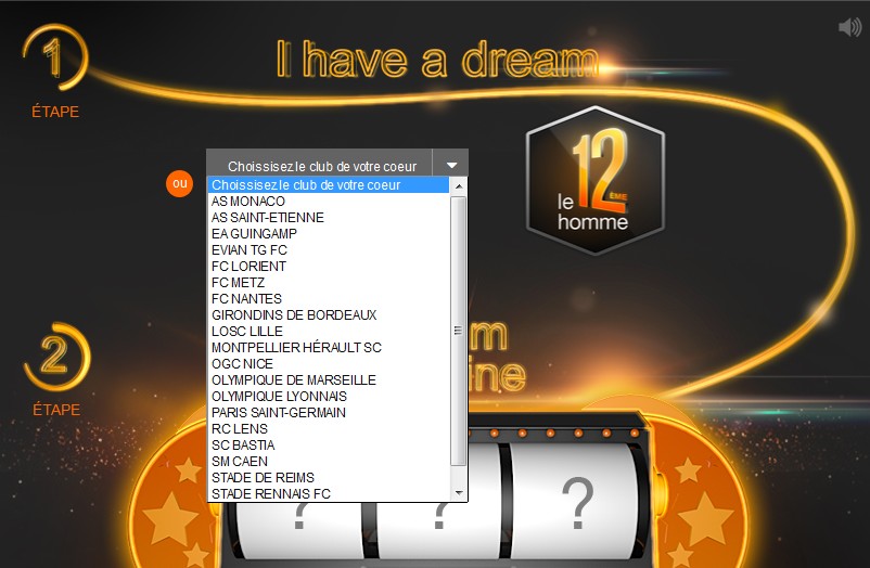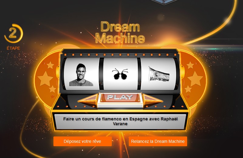 La machine génère des propositions de rêves selon votre équipe ou joueur préféré du team Orange, si l’une des propositions vous convient, vous la sélectionner et attendez d’être tiré au sort pour la voir se réaliser. Si vous préférez soumettre un rêve issu de votre propre imaginaire, il est toujours possible de le soumettre au 12ème Homme, s’il est original et sort de l’ordinaire, Orange se fera un plaisir de le réaliser comme il l’a fait l’année dernière en offrant une nuit de rêve à un supporter des verts en lui permettant de camper à Geoffroy Guichard et de rencontrer des joueurs de l’ASSE.