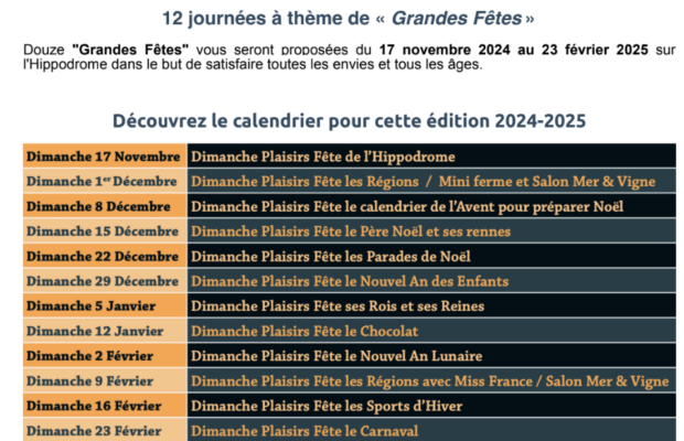 Ces journées sont une invitation à vivre une expérience unique tout au long de 12 dimanches du Meeting d’Hiver : l’adrénaline des courses hippiques les plus prestigieuses, des animations pour tous les âges et la découverte des saveurs du Food Court by Les Comptoirs de Milo.