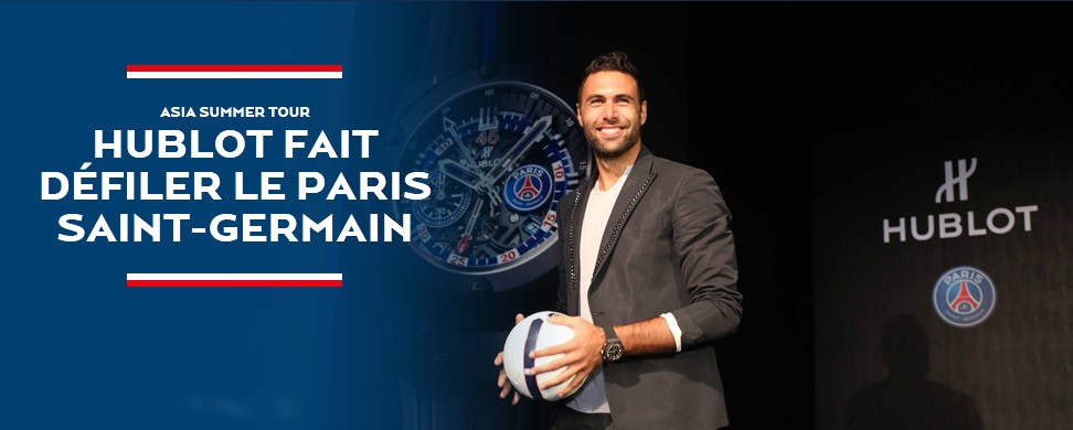 Afin de préparer la saison 2014/2015, le club du PSG a choisi l’Asie pour pied-à-terre. A cette occasion, Hublot, partenaire du club, a profité de la présence des joueurs à Hong Kong pour promouvoir sa marque. « Paris » est un symbole en Chine, synonyme de rêve et de luxe, les joueurs du PSG étaient donc les parfaites égéries pour promouvoir la marque Hublot en Chine qui est un marché incontournable pour les horlogers de luxe.