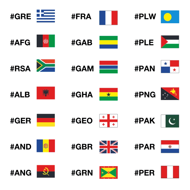 Pour faciliter les conversations autour des Jeux Olympiques et ses moments forts, Twitter a fait de #Rio2016, le hashtag de référence. Les emojis sont au rendez-vous pour ces Jeux Olympiques de Rio. D’autres hashtags seront accompagnés d’un emoji généré automatiquement. Chaque pays a son hashtag dédié avec son drapeau associé. Il en est de même pour chaque sport qui se voient être illustrés lorsqu’on les cite dans un tweet.
