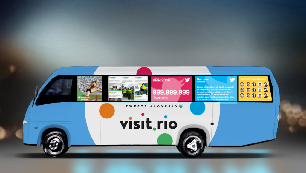 Sur place à Rio, Twitter a décidé de faire circuler un bus qui retransmettra les meilleurs contenus sur ses vitres, il sera également équipé de wifi gratuit pour permettre au plus grand nombre de partager leurs photos, vidéos ou messages.