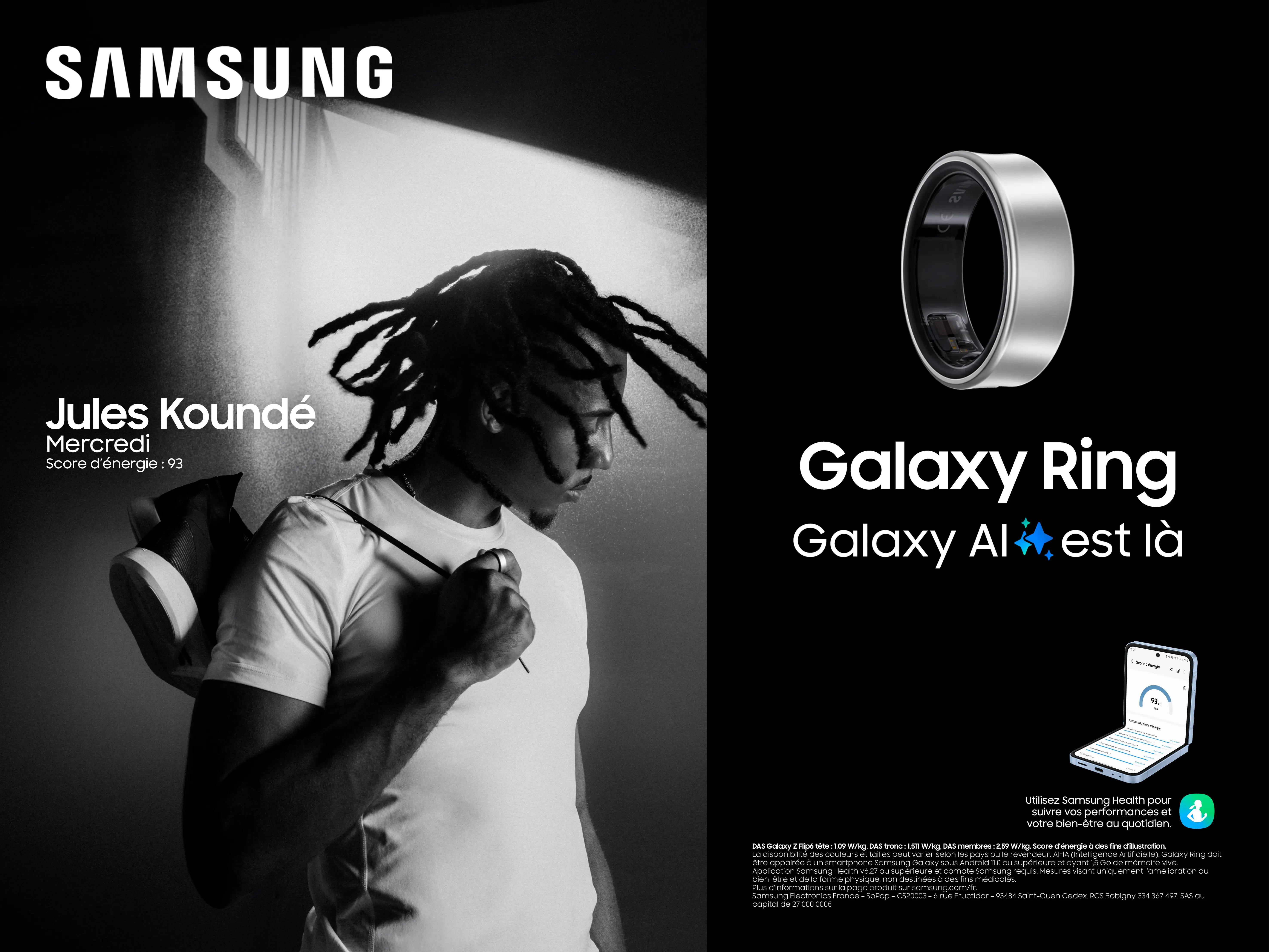 « En tant qu’athlète, je dois traiter mon corps comme un temple. C’est mon outil de travail, mon vecteur de performance. Le Football de haut niveau est en constante évolution et on est désormais entouré de datas au quotidien. Et pour moi, chaque détail compte, sur le terrain comme en dehors. Je suis toujours à la recherche de la meilleure version de moi-même. Avec Samsung, j’ai trouvé l’alliance subtile de la technologie et du design, de l’utile et de l’agréable. Leurs produits m’aident à mieux me connaître, à prendre soin de moi et à être plus efficace. Je suis ravi de cette collaboration car j’ai le sentiment de partager avec la marque ces valeurs fortes que sont l’innovation, l’élégance et la performance », explique Jules Koundé.