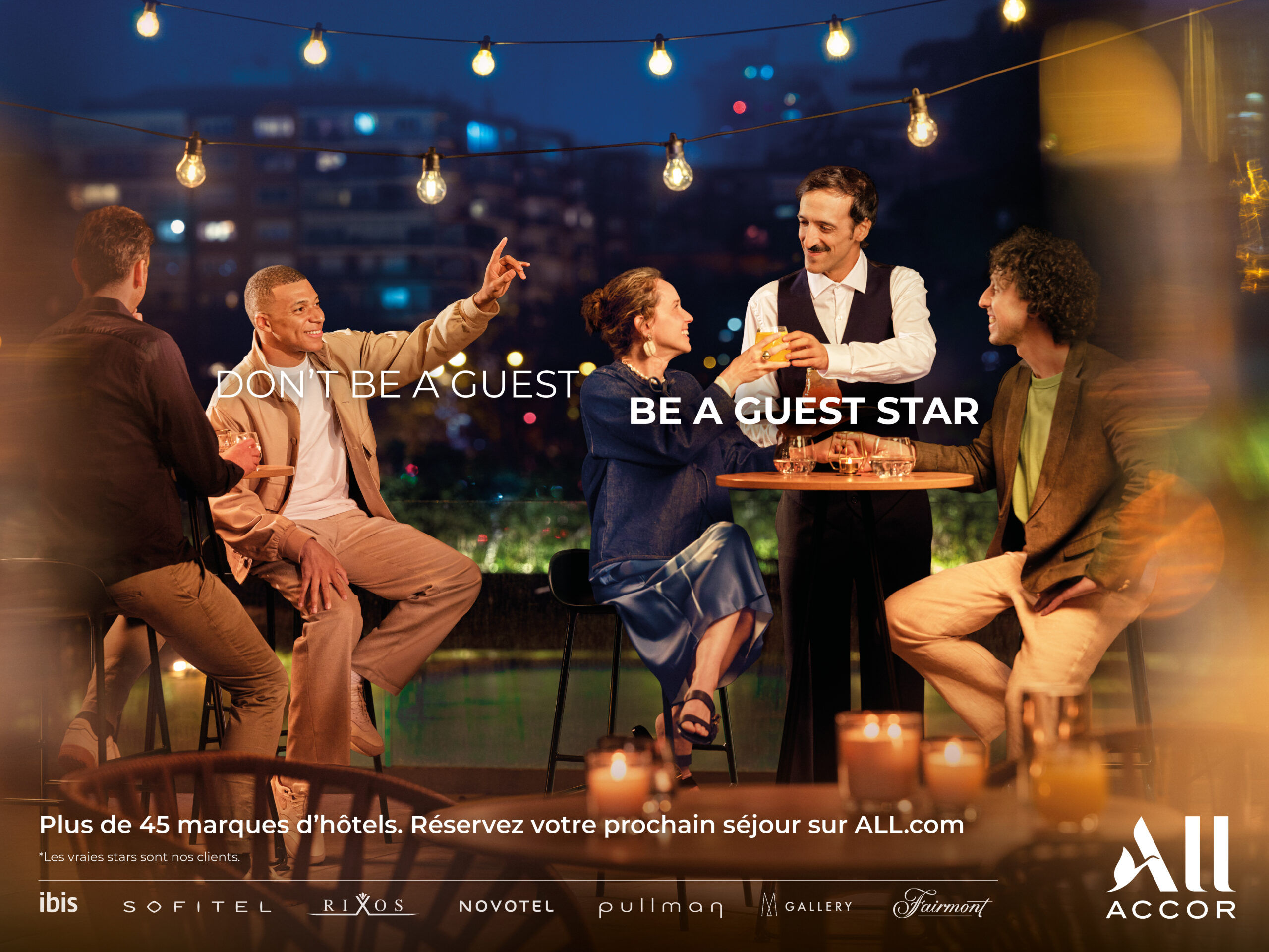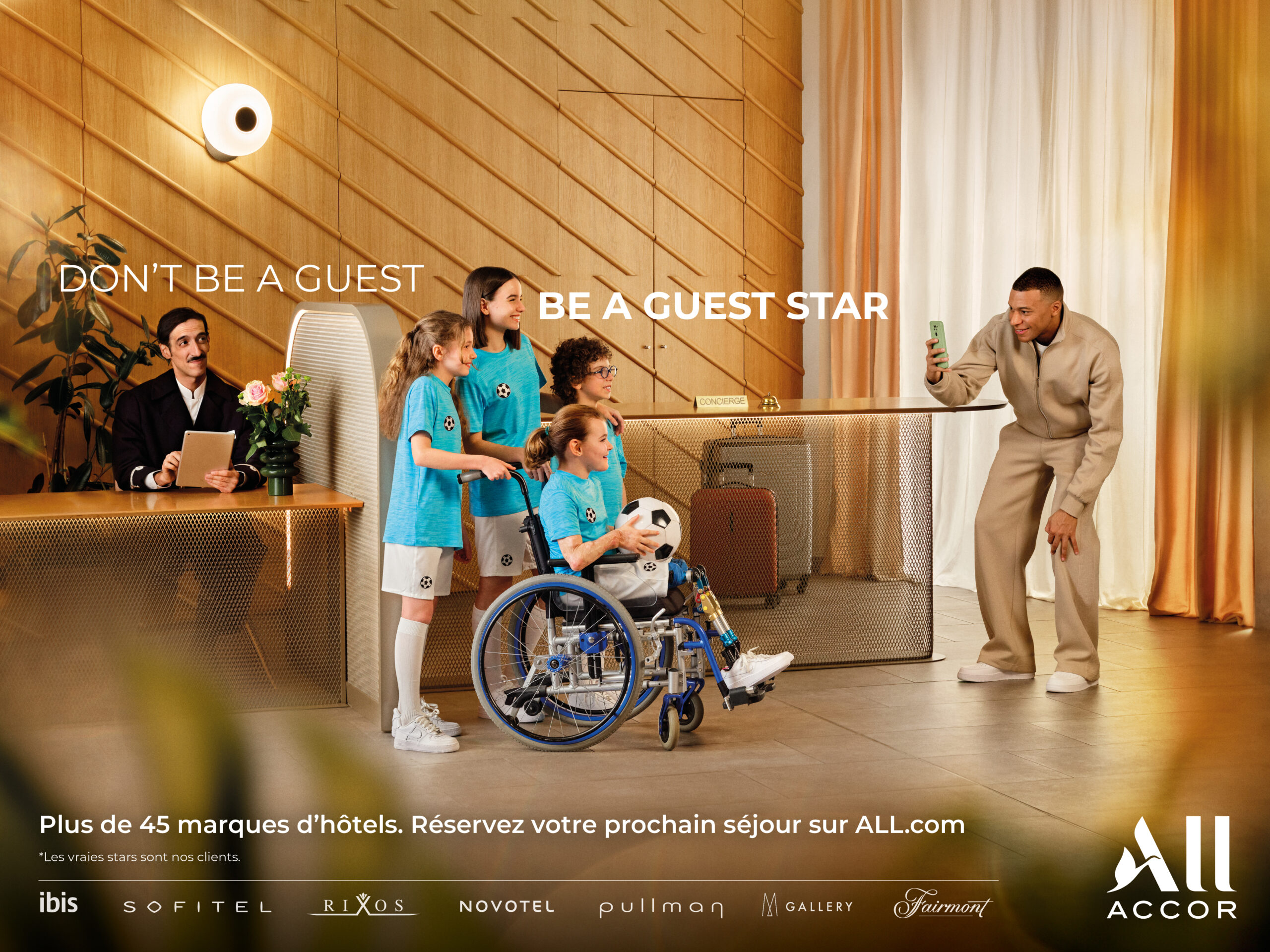 La plateforme ALL Accor, plateforme de réservation et programme de fidélité de Accor, dévoile aujourd’hui sa nouvelle campagne de marque « Don’t be a Guest, be a Guest Star » incarnée par Kylian Mbappé.