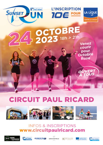 Sur la base de ses traditionnels rendez-vous sportifs les « Sunset Run », le Circuit Paul Ricard ouvrira sa piste de 5,8 km aux coureurs le soir du 24 octobre et l’intégralité des recettes des inscriptions sera reversée à l’association la Ligue contre le Cancer.