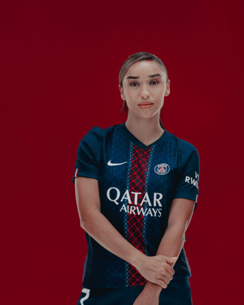 Le maillot du Paris Saint-Germain se réinvente avec une base bleu nuit, des accents éclatants de rouge et de blanc, et un graphisme en treillis inspiré des structures métalliques, clin d’oeil assumé à l’armature d’un monument iconique de Paris prenant ici une place centrale.