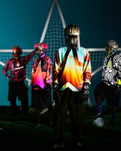 Chaque pièce reprend les marqueurs des futures tenues de gardiens 2026, mais les amplifie : couleurs intenses, graphismes assumés, narration visuelle poussée. Nike utilise le sportswear comme un laboratoire créatif, capable de tester l’acceptation culturelle d’esthétiques radicales avant leur arrivée sur les terrains.