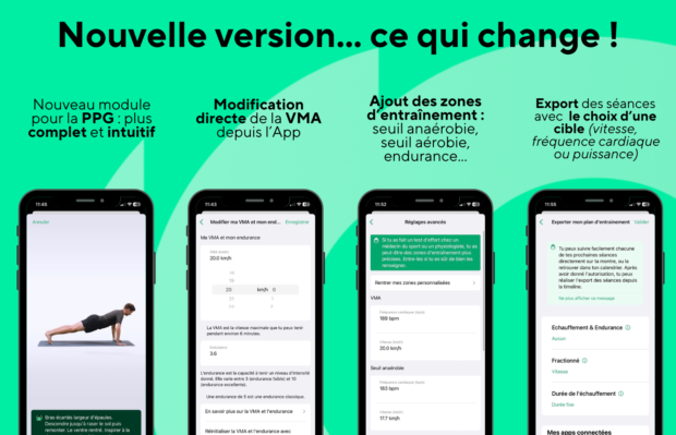 Les autres nouveautés de l’application : Une optimisation des réglages avec une intégration directe à l’écran des données physiologiques (Via Mon profil) afin de mettre en avant les paramètres avancés comme puissance critique et zones cardiaques. Cette modification a été apportée via la demande de certains coureurs. Autre nouveauté, l’exportation des séances vers les montres connectées : pour plus de visibilité, le réglage de l’export des séances est mis en avant sur l’écran « exporter mon plan d’entrainement ». L’export est disponible pour Garmin, Suunto, Coros et l’Apple Watch.