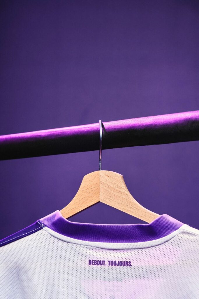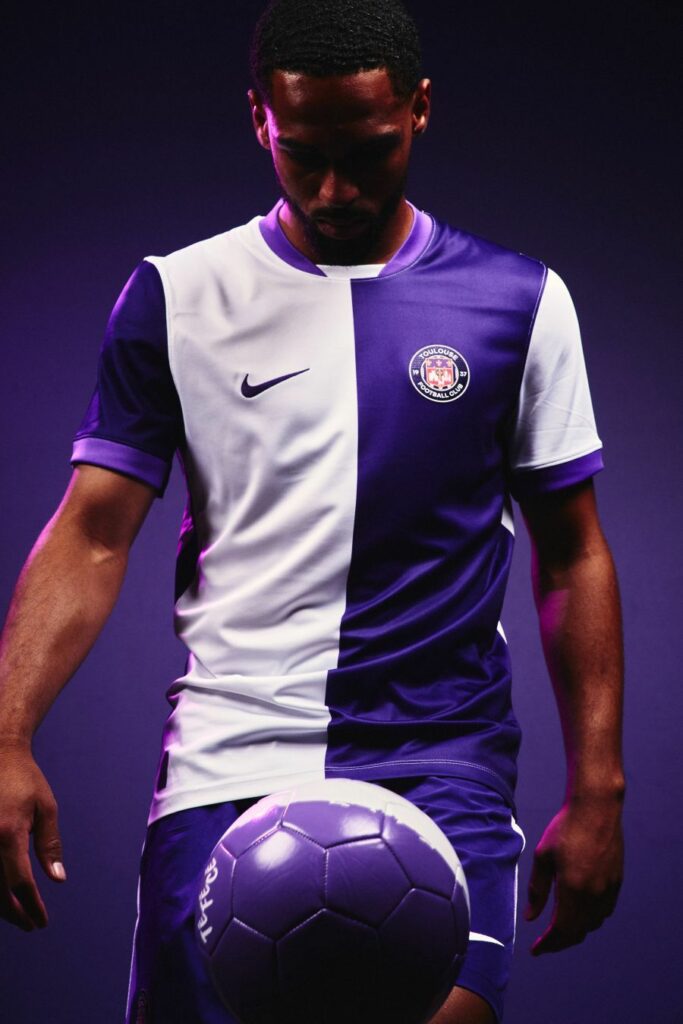 Le nouveau maillot domicile du TFC se distingue par un design inédit, divisé verticalement en deux, mettant en valeur les couleurs emblématiques du club : le violet et le blanc. Ce design unique symbolise l’identité du Toulouse FC et marque une première dans l’histoire des maillots principaux du club.